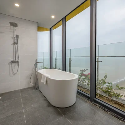Từ ban công riêng, bạn có thể phóng tầm mắt ngắm trọn khung cảnh đại dương bao la, đón bình minh rực rỡ mỗi sáng hay thư giãn trong tiếng sóng vỗ rì rào.