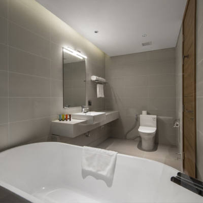 Phòng tắm: Bồn tắm nằm, trang thiết bị hiện đại