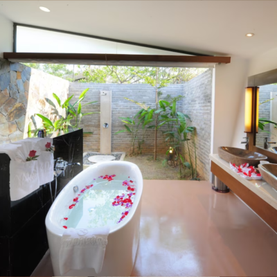 Khách sẽ lưu trú tại Villa 1 phòng ngủ tại khu Hilltop Villa hoặc Forest Villa. Diện tích Villa 1 phòng ngủ Flamingo Đại Lại từ 72 – 140m2, với thiết kế hoà quyện cùng thiên nhiên, nội thất cao cấp, phòng tắm với bồn tắm nằm.